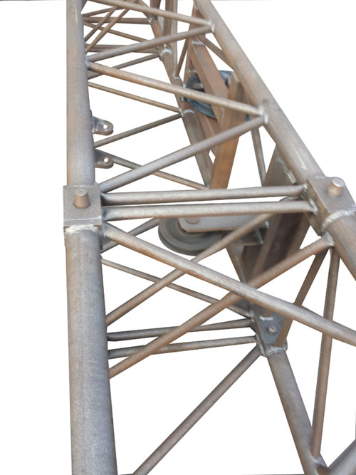 1) This machine is a small fixed tower crane with revolving jib: light mechanism, reasonable force, large carrying capacity with slight structural deformation